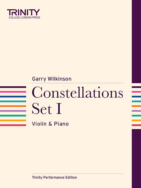Trinity Performance Edition showcases previously unpublished pieces by contemporary composers with each edition dedicated to one composer and instrument. Garry Wilkinson Constellations Set I for Violin and Piano. Titles: Aquila Capricornus Lyra Dorado Leo Ursae Indus Musca Apus Scorpius Perseus.