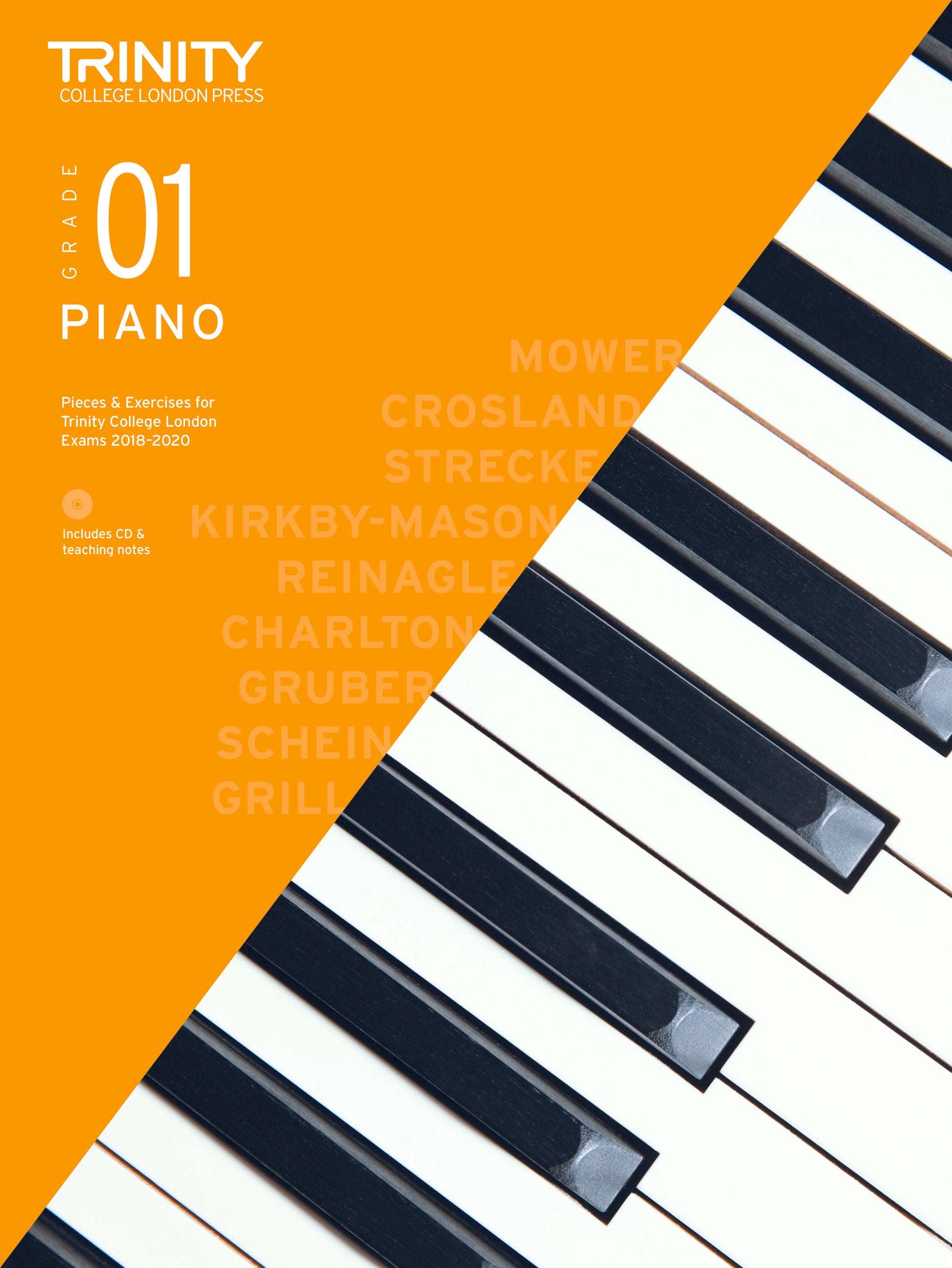 Piano 01: Pieces and exercises for Trinity College London Exams 2018-2020. This book contains a selection of nine pieces for the Trinity Piano Grade 1 exam carefully chosen graded and edited by a panel of experts. It also includes the exercises required for the exam which have been newly composed for the 2018-2020 syllabus. Also included is a CD with recordings of all the pieces and exercises in this book as well as recordings of all the alternative pieces.