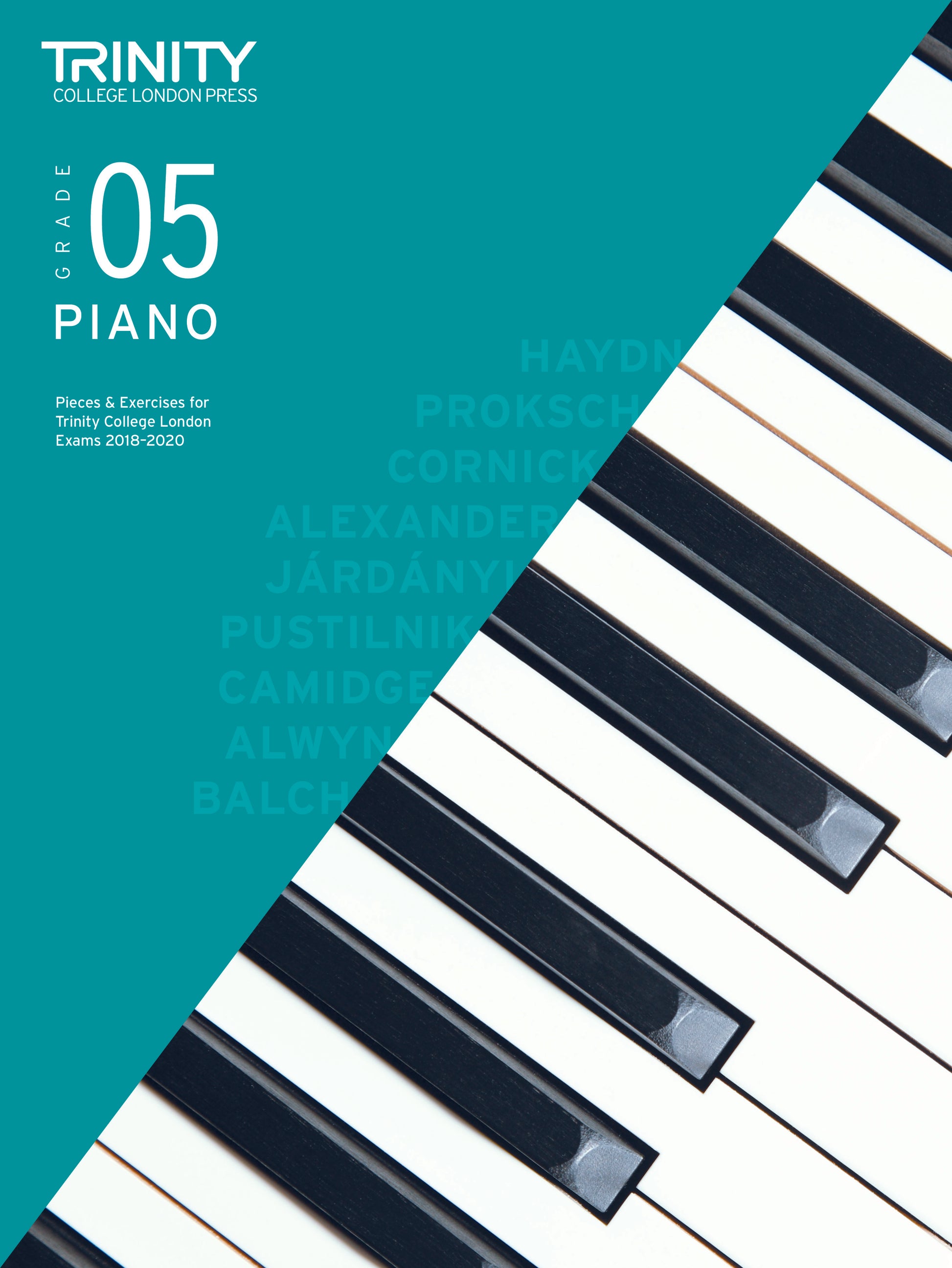 Piano 05: Pieces and exercises for Trinity College London Exams 2018-2020. This book contains a selection of nine pieces for the Trinity Piano Grade 5 exam carefully chosen graded and edited by a panel of experts. It also includes the exercises required for the exam which have been newly composed for the 2018-2020 syllabus. Encompassing a wide range of styles and genres at every grade this progressive series provides a wealth of engaging repertoire for any pianist.