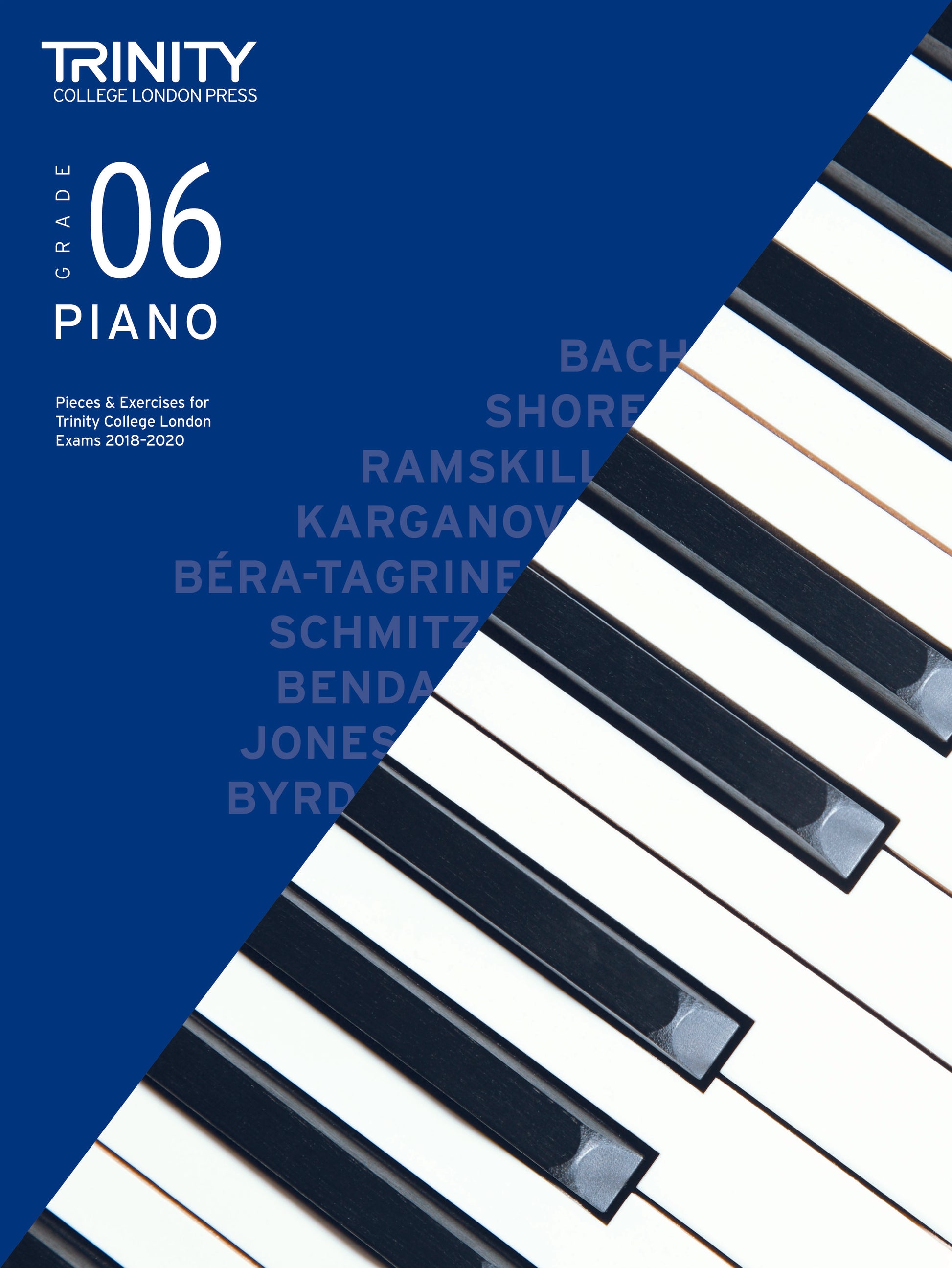 Piano 06: Pieces and exercises for Trinity College London Exams 2018-2020. This book contains a selection of nine pieces for the Trinity Piano Grade 6 exam carefully chosen graded and edited by a panel of experts. It also includes the exercises required for the exam which have been newly composed for the 2018-2020 syllabus. Encompassing a wide range of styles and genres at every grade this progressive series provides a wealth of engaging repertoire for any pianist.