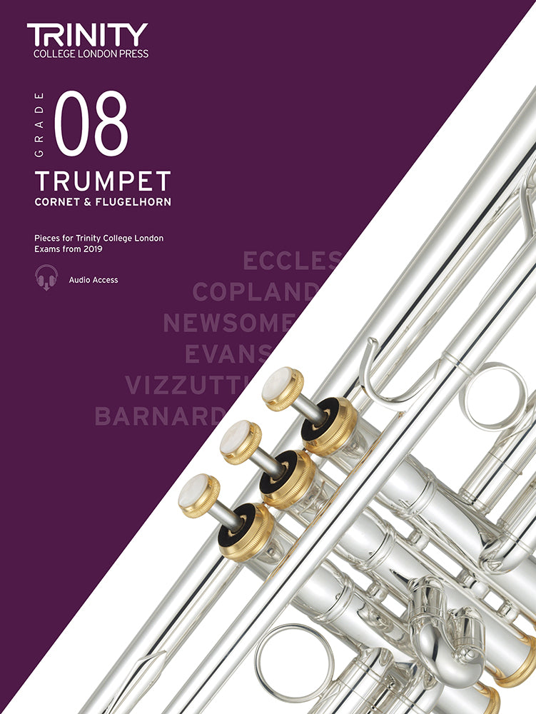 Trumpet Cornet and Flugelhorn Grade 08. Pieces for Trinity College Exams 2019-2022. This book contains a selection of six pieces carefully chosen graded and edited by a panel of experts. Demonstration recordings and piano playalongs can be downloaded free. Features: Eccles arr Sanders Copland arr Wastall Newsome Evans Vizzutti Barnard.